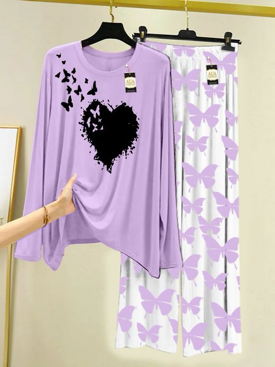 New Heart Printed Love Jersey Nightwear for Women