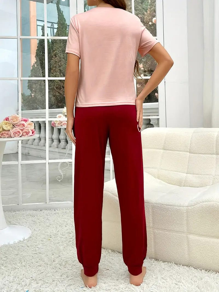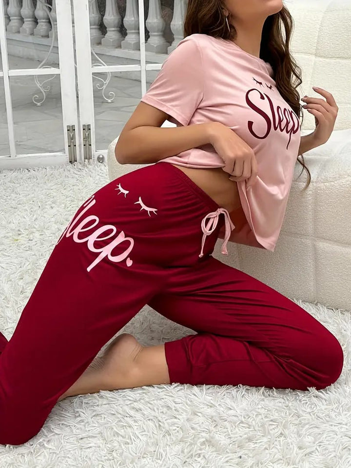 Pink Sleep Print half Sleeves T-shirt With Sleep Print Pajama Suit (AA-223)