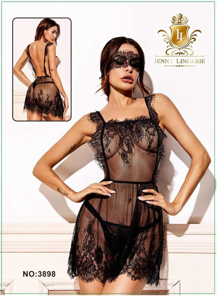 Sexy Nighty for Women Floral Lace Transparent Short Nighty and Panty Online In Pakistan