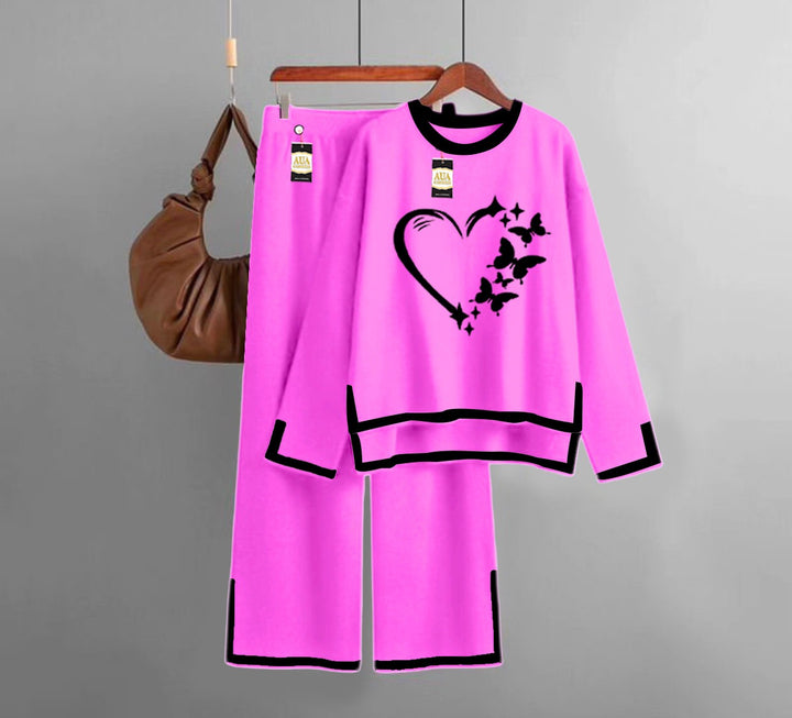 Women Heart Turkish Winter Co-Ord Set for Women - Warm & Stylish Loungewear Hot Pink